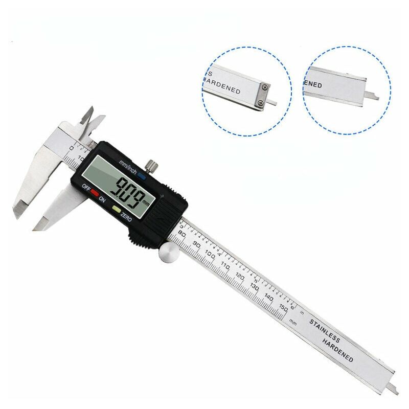 Caratteristiche?:1. scala principale e ganasce di misura in acciaio inox temprato.2. Griglia fissa in vetro della migliore qualità, stabile, durevole e di alta precisione.3. Visualizzazione rapida del valore misurato su LCD, nessun errore di velocità eccessiva. Nota: batteria non inclusa. A causa della differenza tra diversi monitor, l'immagine potrebbe non riflettere il colore effettivo dell'articolo. Contenuto della confezione: 1 pezzo di calibri digitali