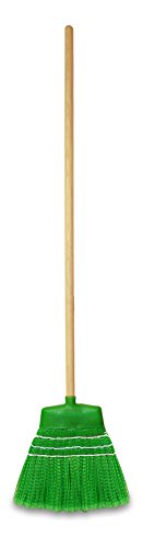 Scopa composta da filamenti in plastica di lunga durata e da un manico in legno.