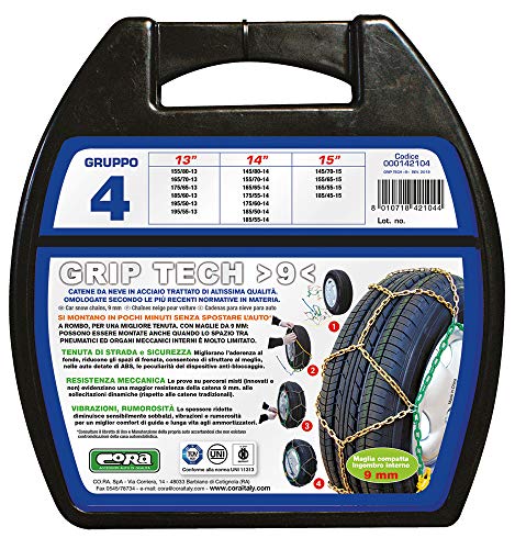 CORA 000142104 Catene da Neve per Auto Grip Tech, 9 mm, Gruppo 4, Set di 2