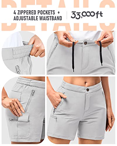33,000ft Pantaloncini da trekking da donna, ad asciugatura rapida, 12,7 cm, elasticizzati, leggeri, estivi, UPF50+, per golf, campeggio, viaggi, corsa, Grigio chiaro, 40