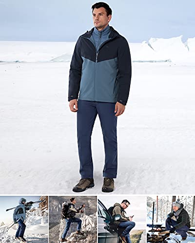 33,000ft Pantaloni da uomo in softshell, impermeabili, antivento, con calda imbottitura in pile, da lavoro, invernali, da trekking, denim scuro, 40W x 34L