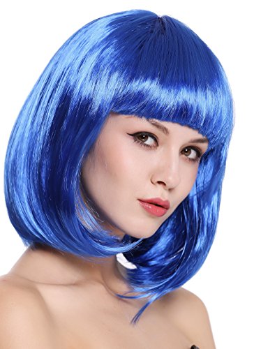 WIG ME UP - 0073-3-PC3 Parrucca Donna Carnevale Bob Lungo Bob Altezza Spalle Liscia Frangetta Blu