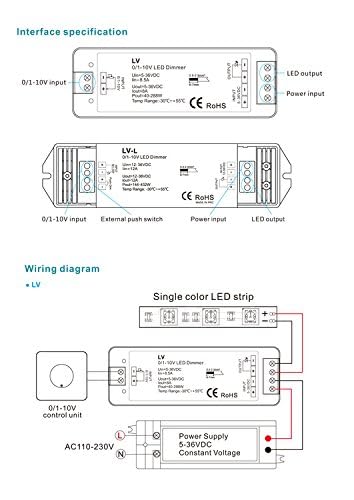 0/1-10V 1CH 8A Dimmable Switches Led Driver 1 Channel 0-10V Constant Voltage LED Dimmer Led Dimming Controller PWM Led Dimmer 5-36V