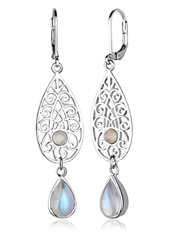 Elli 0301512315 Orecchini pendenti da donna, con pietre ornamentali a goccia, in argento 925, con pietra di luna bianca