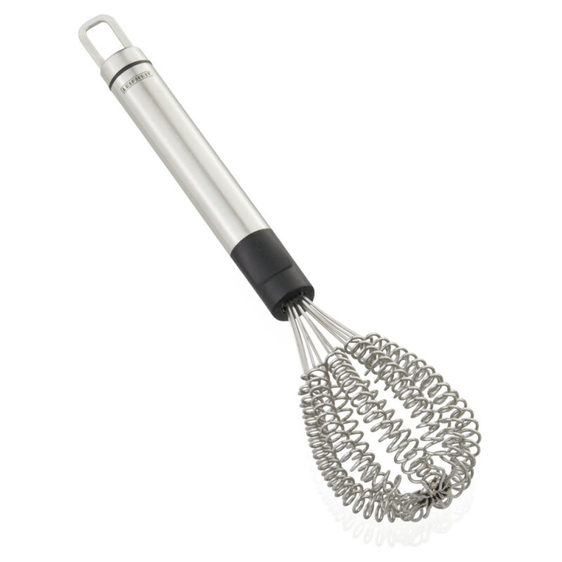 Leifheit 3097 Garde Speed Quirl S Sbattere la panna da montare o gli albumi o montare la schiuma di latte due volte più velocemente. Ma anche per addensare salse cremose. La nuova Speed Quirl S di Leifheit è la prima frusta che detta davvero il ritmo. Ciascuno degli otto fili di questa innovativa frusta è un filo a spirale. Ciò rende i fili molto più lunghi, il che fornisce maggiore resistenza e quindi un risultato più rapido. Fino al 50% di risparmio di tempo, con uno sforzo chiaramente inferiore. Non è necessario tirare fuori il robot da cucina o il mixer dall'armadio. Lo Speed Quirl S è subito a portata di mano e si pulisce altrettanto velocemente. Può semplicemente andare in lavastoviglie. Con manico in acciaio inossidabile di alta qualità per una presa comoda. Con occhio pendente. Frusta Speed Quirl S è stata sviluppata in collaborazione con lo chef stellato tedesco Christian Henze. Frusta con speciali fili a spirale Mescolare e sbattere due volte più velocemente con la metà