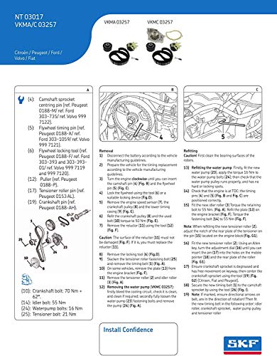 Comprende la cinghia di distribuzione, il tendicinghia SKF, la puleggia SKF di qualità, nonché pompa acqua SKF Aquamax con efficienza di raffreddamento di qualità OE per prestazioni ottimizzate.
