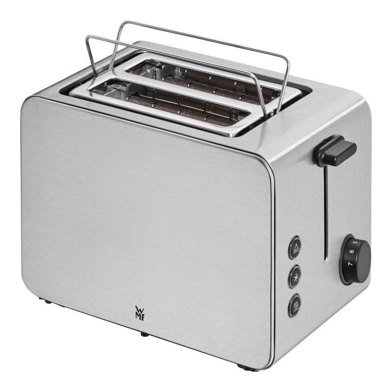 WMF 0414210011 Tostapane Stelio Per 2 fette di pane Sollevapane Portapane Vassoio raccogli briciole Materiale: Acciaio inossidabile Cromargan® 18/10 Colore marrone regolare grazie alla conduzione ottimale del calore Potenza: 1050 Watt