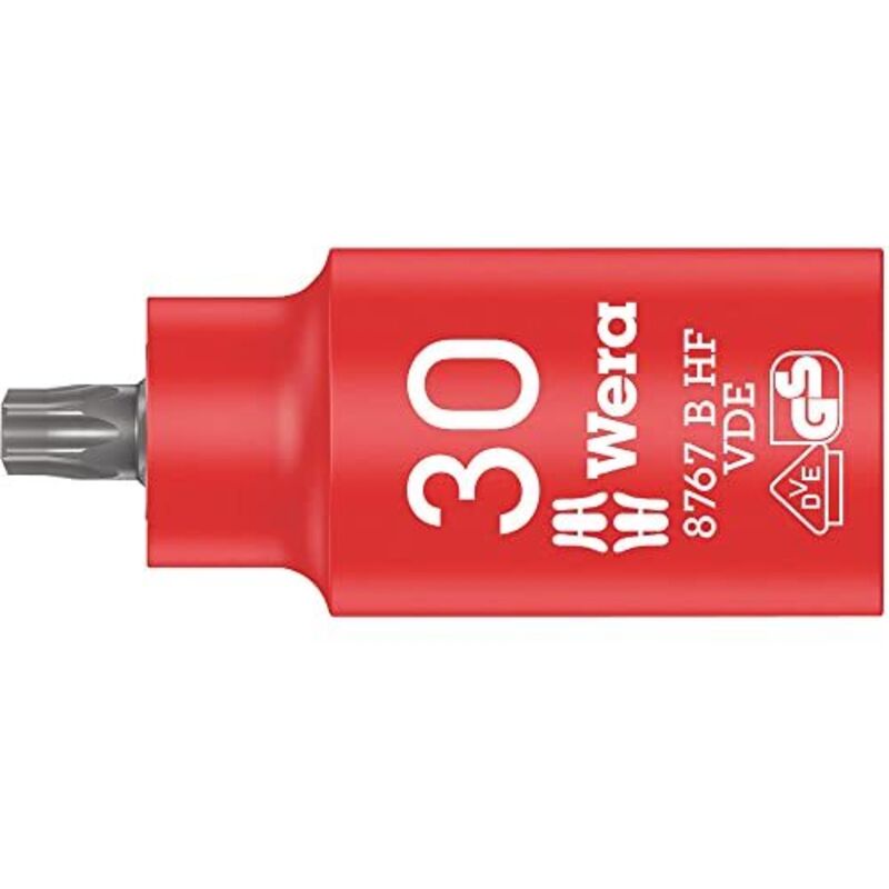 Dettagli tecnici Dimensione del prodotto, lunghezza 55 mm Tipo prodotto Inserto giravite a bussola TX30 8767 B Zyklop VDE TORX® bitnuss HF, isolato, con azionamento a 3/8, con funzione di tenuta Bitnuss VDE 3/8 con funzione di fissaggio per viti particolarmente comoda con riduzione del rischio di perdita di viti per l'alimentazione al pezzo. Con una maggiore sicurezza con isolamento giallo, a un eventuale danneggiamento del rivestimento di isolamento VDE rosso esterno sia visibile. Utensili collaudati in conformità di IEC 60900 a 10.000 V per lavorare in modo sicuro durante la tensione consentita di 1.000 V. Testo tradotto automaticamente. Caratteristiche Pezzi testato secondo utensili IEC 60900 a 10000 V per lavoro sicuro fino a 1.000 Volt Estremamente breve e compatto VDE-Bitnuss 3/8 per un lavoro semplice anche in spazi più ristretti Maggiore sicurezza grazie a 2 komponentige isolamento con isolamento in giallo nucleo di isolamento rosso La funzione di tenuta tiene le viti
