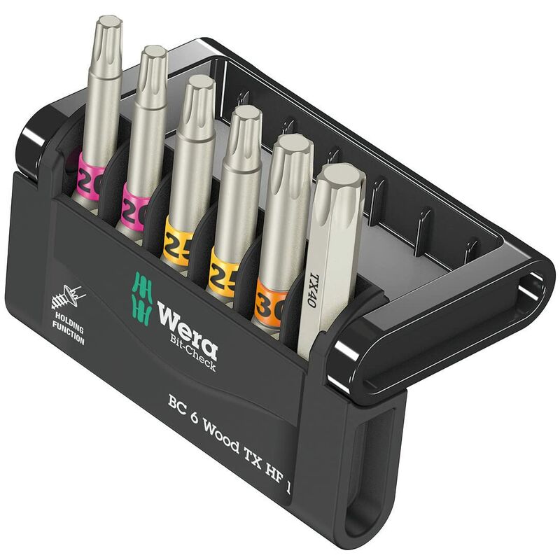 Descrizione Serie inserti, particolarmente adatti per la lavorazione del legno. Gli inserti 867/4 TORX® HF, grazie alla loro speciale geometria TORX®, trattengono saldamente sull'utensile le viti secondo specifiche Acument Intellectual Properties! Ciò è particolarmente utile lavorando in punti di difficile accesso, quando non si può utilizzare la seconda mano per trattenere la vite. Sono adatti anche per viti Würth ASSY e viti Altenloh SPAX T-STAR plus. Con trovautensili Take it easy: identificazione cromatica a seconda della misura. Il Bit-Check consente una rapida panoramica dell'utensile che necessita. Gli inserti che non servono vengono riposti nell'assortimento e non vanno persi. Trasporto facile p.es. nel taschino della camicia. Il Bit-Check può essere collocato sul luogo di lavoro, in modo da garantire il facile prelievo dell'utensile.