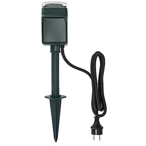 REV 0595008555 Presa da Giardino a 2 Prese, IP44, Cavo da 1,5 m, Max. 3500 W, 230 V, Verde