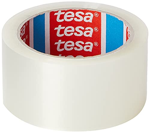 Tesa 06400-00001-02 Tesapack Dispenser Comfort per nastro fino a 5 cm di larghezza/132 m di lunghezza, Blue, Orange & 57167-00000-05 Pacco nastro di imballaggio forte colore trasparente