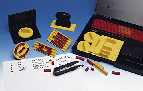 Incl. numeri, sigla dell'euro e simbolo del telefono, 5 supporti per composizione, nonché rispettivamente 1 timbro per composizione tonda e ovale, 1 impugnatura timbro, 1 pinzetta e 1 cuscinetto timbro.