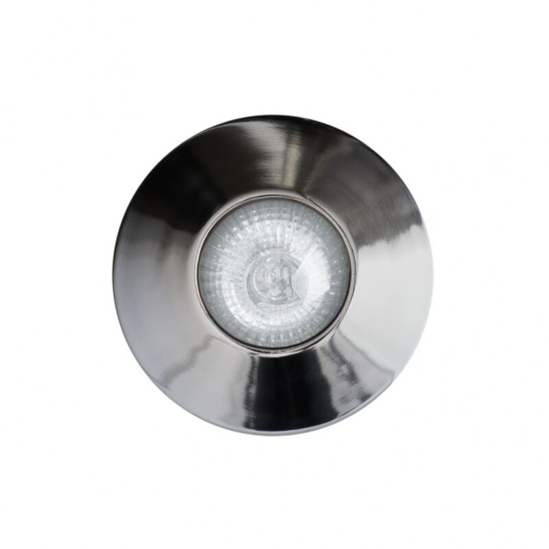 TRENZA incasso realizzato in alluminio color cromo. Ha misure di 9X9X2,5 centimetri e un peso netto di 80 grammi. Portalampada GU10.