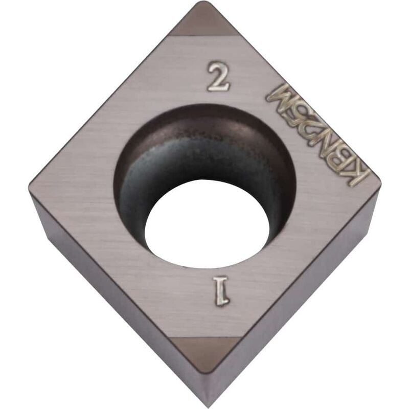 2 taglienti per inserto con speciale smussatura per ottimizzazione nel taglio interrotto. Dati tecnici irregolare idoneo Acciaio < 55 HRC m/min idoneo a secco idoneo interrotto limitatamente adatto Acciaio < 60 HRC m/min idoneo Acciaio < 67 HRC m/min idoneo continuo limitatamente adatto Attributo del nome del prodotto KBN25M Profilo degli inserti neutro Tipo di prodotto Inserto per tornitura USP1 CCMW 09T308 USP2 CBN (5° / 7°) Materiale da taglio CBN Avanzamento f, mm/U 0,1 - 0,2 Codice ISO Inserto CCMW 09T308 Tipo KBN25M Numero di sostituzioni/taglienti 2 Condizione di taglio leggermente interrotto Esecuzione del tagliente MET Profondità di taglio ap, mm 0,05 - 0,5 Velocità di taglio vc applicazione principale, m/min 100 - 180 Raggio di curvatura, mm 0,8 Assegnazione finitura/sgrossatura Finitura