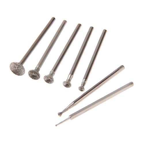 7Pcs 1-8mm Diamond Grinding Head Mounted Points 2.35mm Shank Sferical Concave Jade Carving Burrs per Rotary Tool, come mostrato