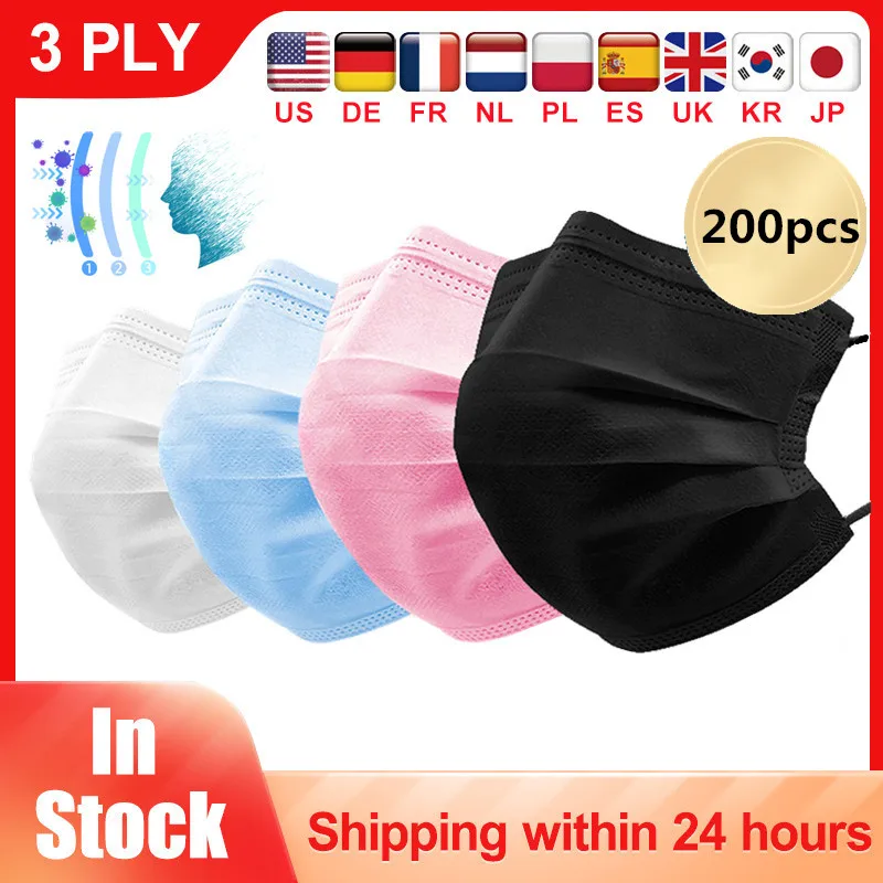 10-200pcs Disposable Mouth Mask Three-layer Nonwove Mask Face Masks Mascarillas Earloop Mask In Stock 24 Hours Fast Ship