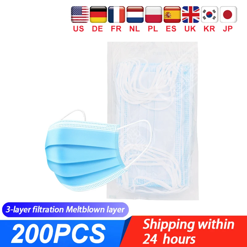 10-200pcs Disposable Surgical Mask Non Wove 3 Layer Ply Filter Medical Face Mouth Mask Breathable Anti-Dust Earloops Masks