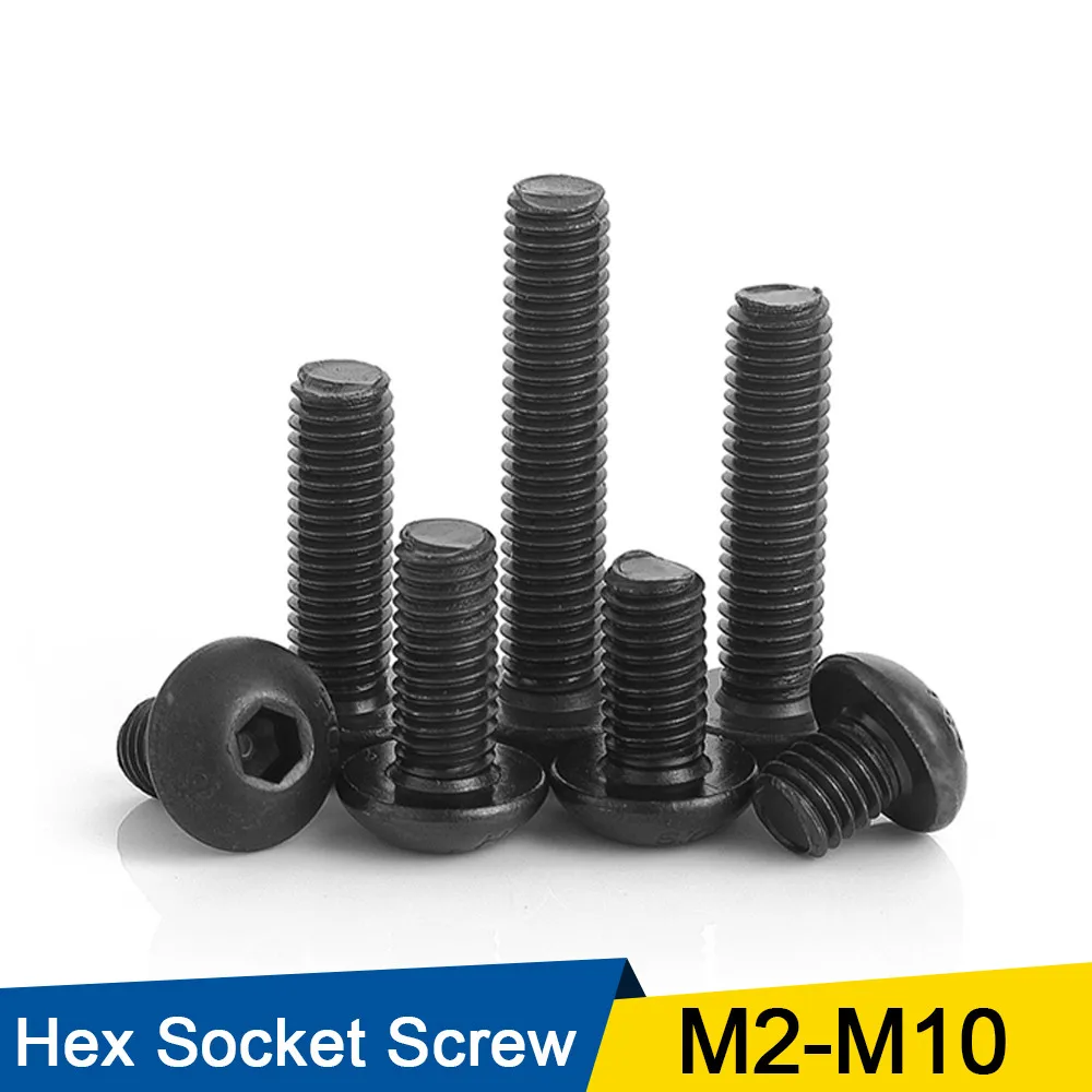 10-60pcs/lot ISO7380 Hex Screw M2 M2.5 M3 M4 M5 M6 M8 Black Button Head Hex Socket Cap Screw Hexagon Socket Round Head Screws