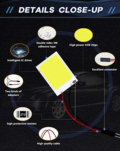 10-Pack White 200Lums COB 24-SMD 12V DC LED Light per Auto Car Interior Lighting Panel Cupola Lampada Mappa Tetto Plafoniera Lampadina con 10 X T10, Festoon Adapter