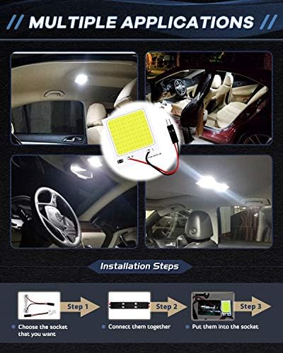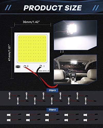 10-Pack White 300Lums COB 48-SMD 12V DC LED Light per Auto Car Interior Lighting Panel Cupola Lampada Mappa Tetto Plafoniera Lampadina con 10 X T10, Festoon Adapter
