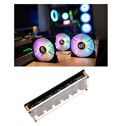 10 vie 5V RGB LED splitter hub con custodia PMMA e doppio adesivo laterale compatibile con ASUS/MSI 5V 3pin LED controller. Nota: questa interfaccia Hub RGB è 5V 3Pin, si prega di controllare l'interfaccia prima dell'uso.