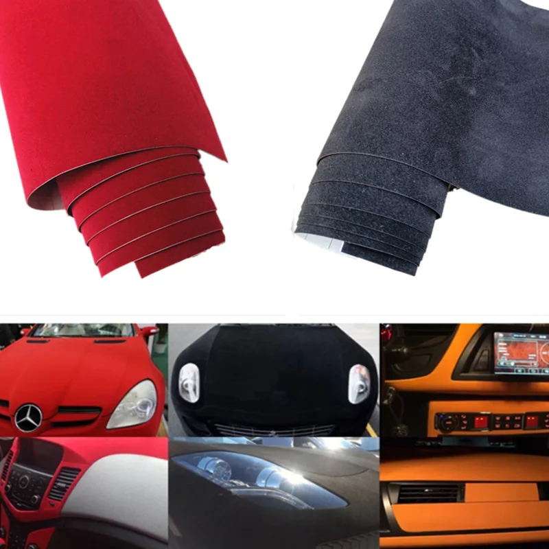 100*30CM Black Red Velvet Fabric Velvet Film Suede Film Car Sticker With Bubble Car Interior Sticker Car Body Decoration Sticker