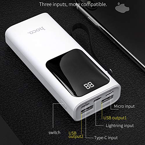 Hoco. 10000 mAh Power Bank portatile, doppia USB e display digitale a LED, mini batteria con cordino per iPhone 11 Pro Max, Samsung S10+/Note 10+, Huawei, ecc (nero)