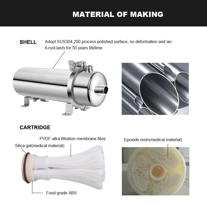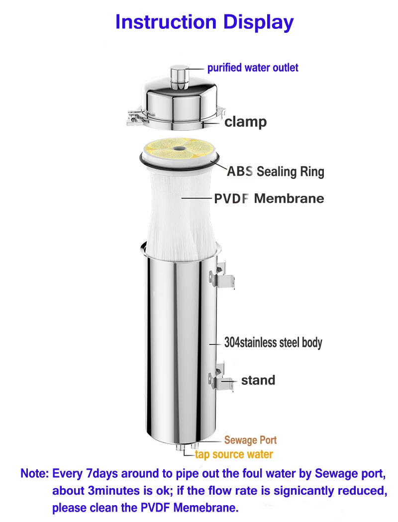 1000L/h External Pressure PVDF UF memebrane replacement/UF cartridge 0.01micron Di:102*250mm Specially fit for QY-GC1000UF