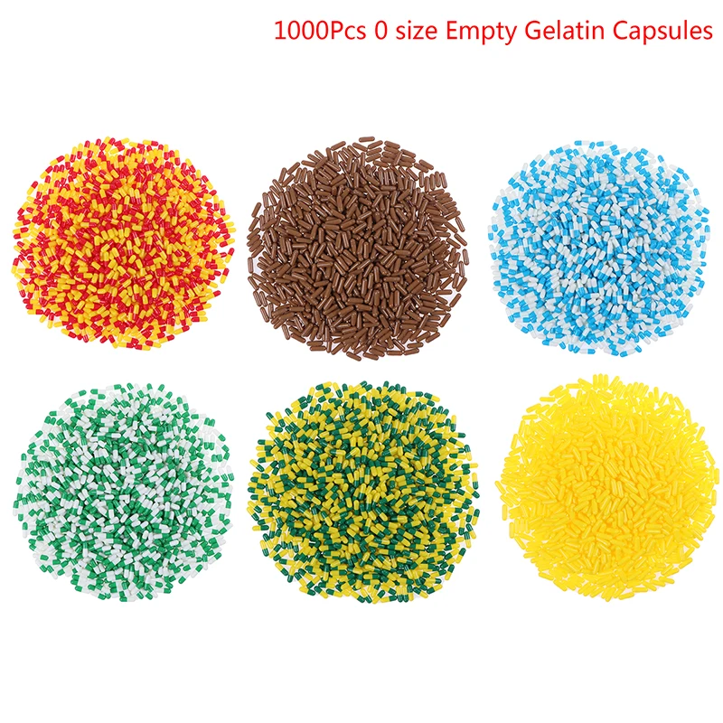 1000Pcs Empty Hard Vacant Gelatin Capsule Size 0#/1#/2# Gel For Medicine Pills Refill Storage