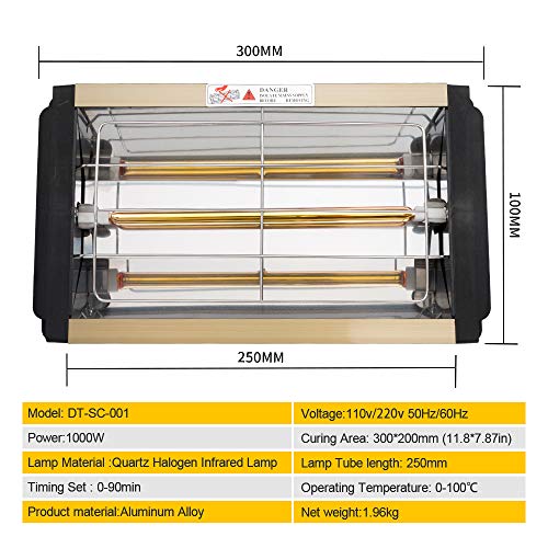 1000W Lampada Infrarossi Carrozzeria Lampada per Asciugare la Vernice Dell'auto Lampada di Polimerizzazione a Infrarossi con 0-90 min Timer per Carrozzeria Strumenti per la Riparazione del Corpo