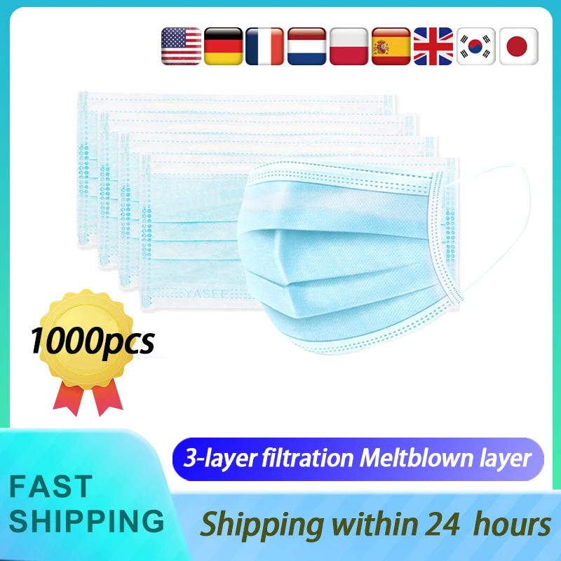 100/200/500pcs Disposable Surgical Mask Non Wove 3 Layer Ply Filter Medical Face Mouth Mask Breathable Anti-Dust Earloops Masks
