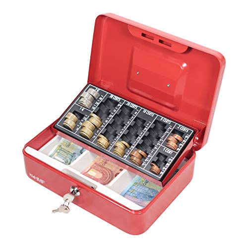 HMF 10022-03 Cassetta Portavalori con Vassoio Porta Monete e Banconote 25 x 18 x 9 cm, rosso