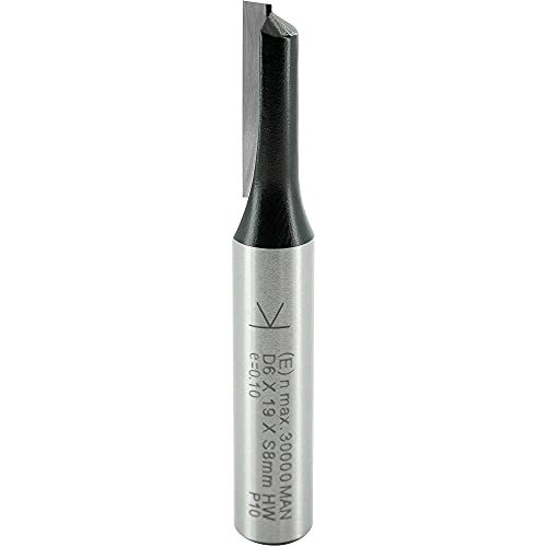 Fresa a singolo flauto, taglio base e laterale. Per scanalature, battute e fresature di fessure. Adatto per lavori grezzi quando i bordi senza strappi non sono assolutamente necessari. Adatto solo per legno tenero.