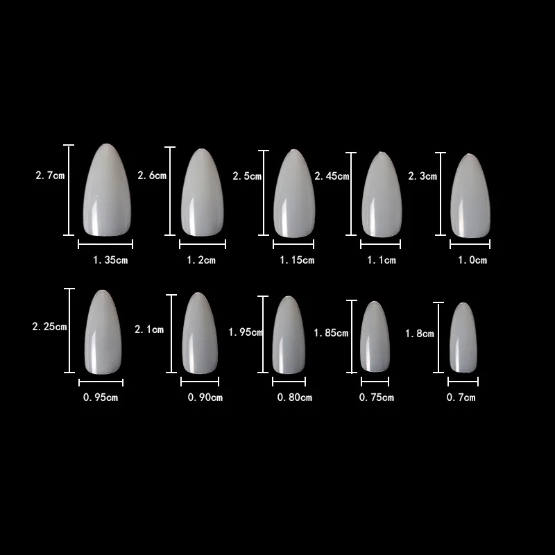 100/500PCS Almond false Nails full cover acrylic nail art tips nature or clear color DIY nail extensions blank press on nails