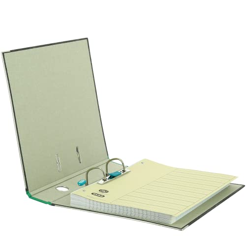 La lima ad arco a leva è rivestita con carta di marmo nuvolosa di alta qualità e certita con l'angelo blu. Il dorso della lima a leva è stato rinforzato con carta speciale colorata. Grazie alla larghezza del dorso di 50 mm, circa 280 fogli DIN A4 possono essere pinzati nella cartella,
