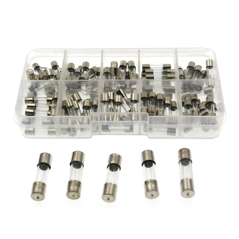 100Pcs Set 5X20mm Quick Blow Glass Tube Fuses Assorted Kits Fast-Blow Glass Fuses 0.2A 0.5A 1A 2A 3A 5A 8A 10A 15A 20A