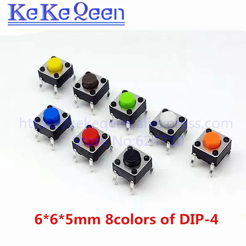100Pcs 6*6*5mm Through Hole Micro Push Button Tactile Tact Electronic Switch Brown Blue Black Red Orange Green Yellow White