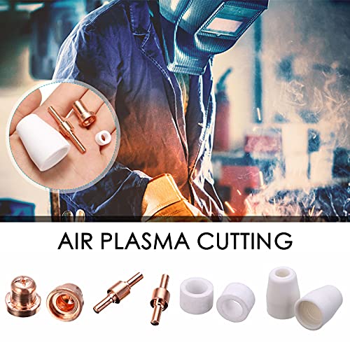 100pcs Accessori per Taglio Plasma, Ugello per Punta Elettrodo Al Plasma Cappucci in Ceramica Accessori per Taglio Materiali Consumo Adatto per Bruciatore Taglio PT-31/LG-40 CUT40 CUT50