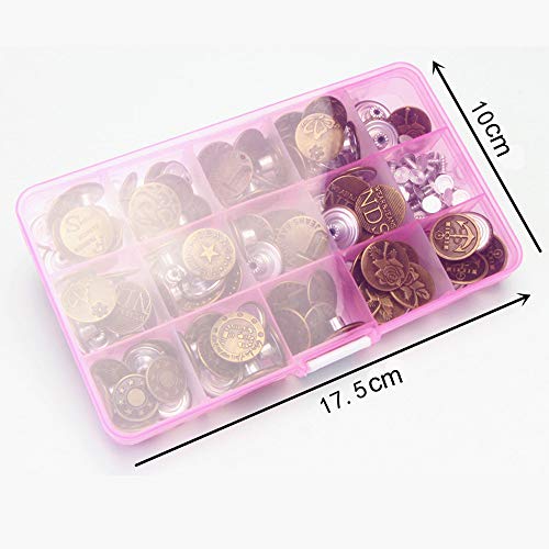 ❤ [Quantità in questo pacchetto] contiene 100 bottoni jeans (composti da cappelli e chiodi) e 1 scatola portaoggetti (colore casuale)