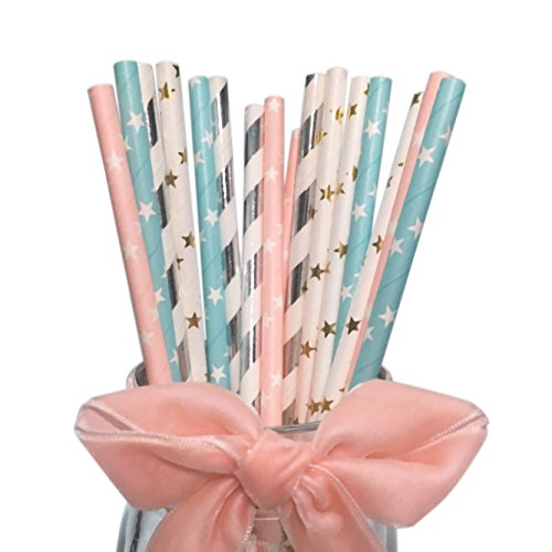 Bofa 100pcs Colorful cannucce 19.7 cm Pink Star, Stella Blu, Argento, a Forma di Stella, Oro Stripes