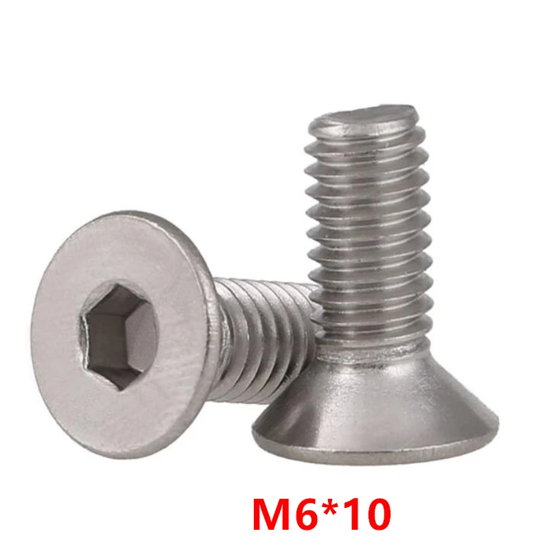 100pcs DIN7991 M6*10 Hex Socket Machine Screw Flat Countersunk Head Screws Bolt 304 Stainless steel A2-70 M6X10mm Bolts
