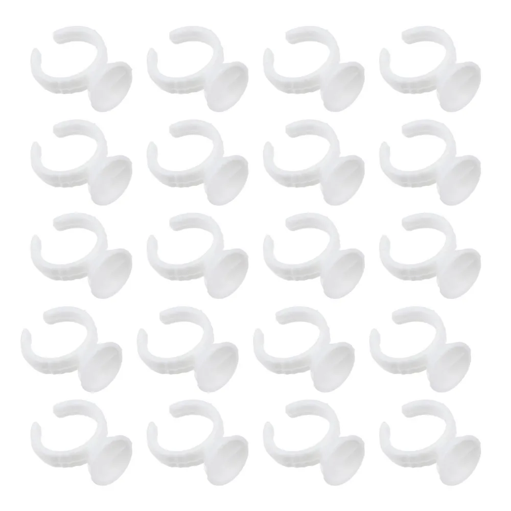 100pcs Disposable Glue Holders Rings Eyelash Extensions Kit Small Size (White)