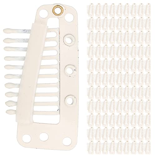 100pcs 10 Clip per L'estensione dei Capelli dei Denti, Clip per Parrucca in Acciaio Inossidabile Clip a Scatto per Parrucchino Fai-da-te per L'estensione dei Capelli (Beige)