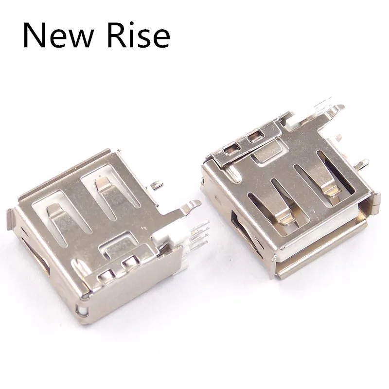 100Pcs USB Type A Female Solder Jacks Connector Side Needle 4Pin 90 Degree USB Data Interface Length 14mm