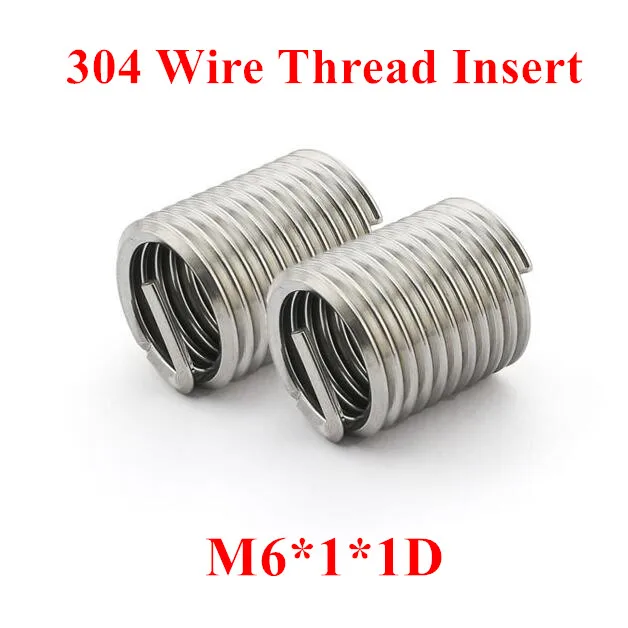 100pcs M6*1*1D M6 Wire Thread Insert 304 Stainless steel m6 Screw Bushing, m6*1D Wire Screw Sleeve Thread Repair Insert