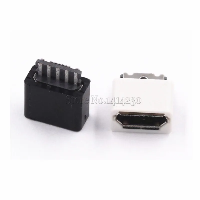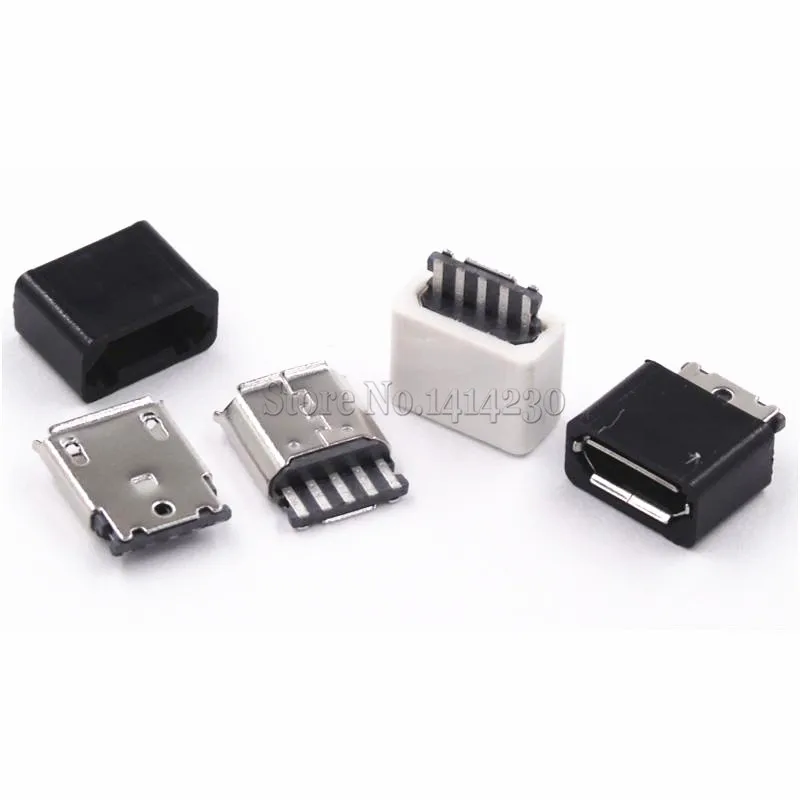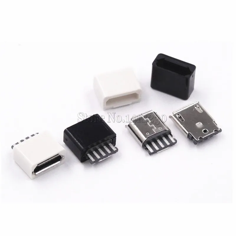 100PCS DIY Micro USB 5P 5Pin Female Plug Connectors Kit Black and White With a Shell Welding Line Type