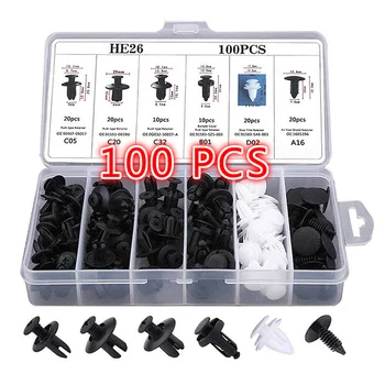 100PCS Mixed Auto Fastener Clip Car Body Push Retainer Pin Rivet Bumper Door Trim Panel Retainer Fastener Kit Universal Tools