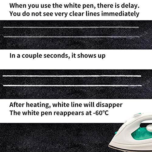 【FACILE E CONVENIENTE】Il materiale della penna bianca cancellabile per tessuto è inchiostro di alta qualità, che può cancellare con il calore e svanire facilmente. Toccando il ferro rapidamente e i segni saranno spariti, nessun residuo da sporcare i vestiti o il tessuto.