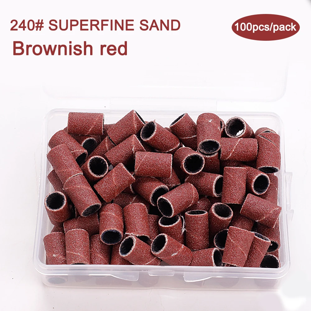 100Pcs Nail Art Sanding Bands Electric Nail Drill bits 240/180/120/80 Grit Nails Gel Polish Removal Tools For manicure pedicure