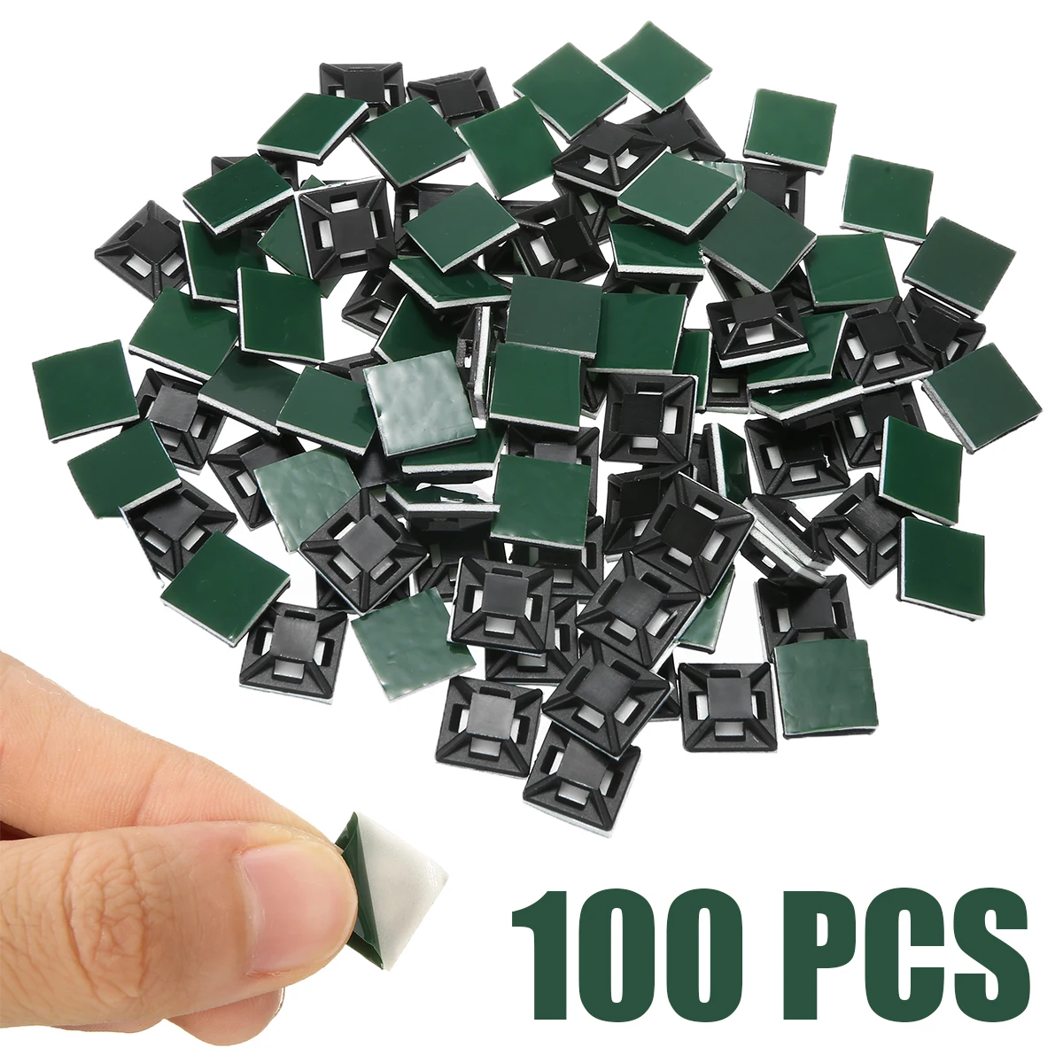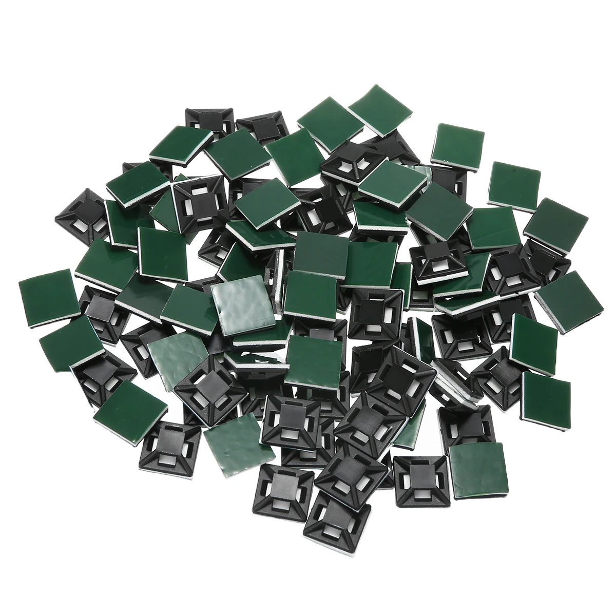 100pcs Square Self Adhesive Cable Wire Tie Base Mounts Bases Sticky Socket Wall Holder Fixing Seat Clamps 12.5*12.5*4mm Green